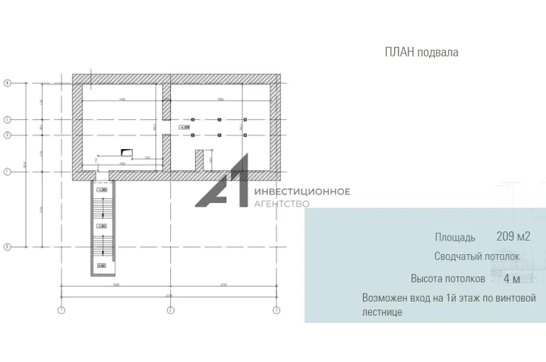 - на первом этаже в части здания и в подвальном помещении - сводчатые потолки. Подвал оснащен отдельным входом.