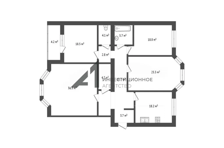 - Четырехкомнатная квартира общей площадью - 155.8 кв.м.