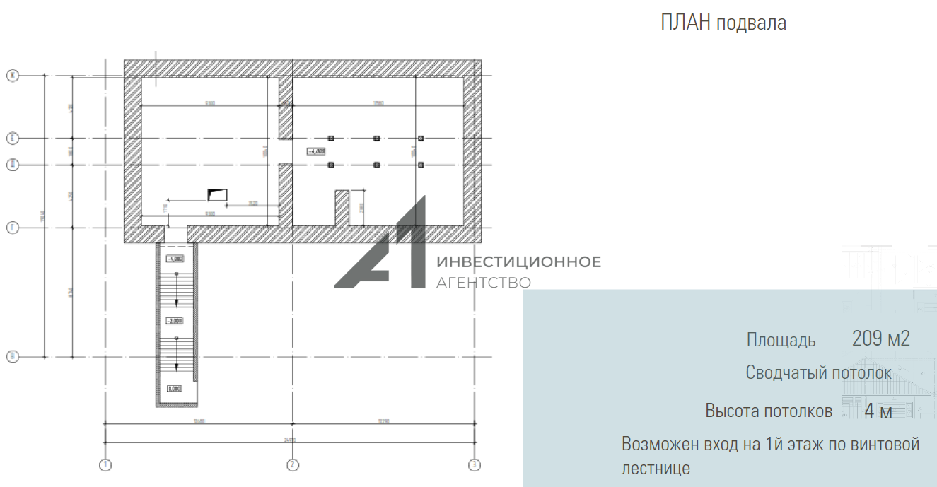 - на первом этаже в части здания и в подвальном помещении - сводчатые потолки. Подвал оснащен отдельным входом.