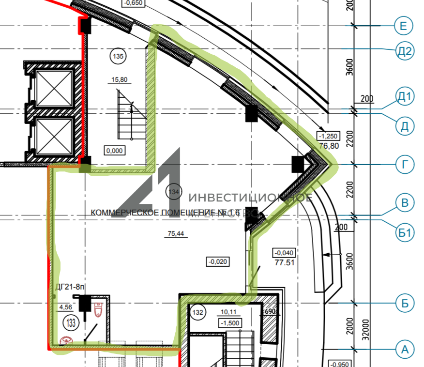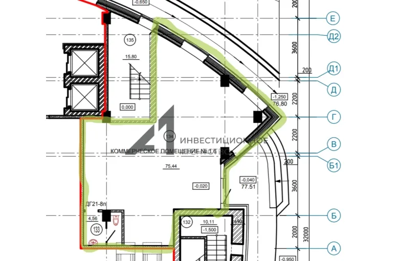 - нежилое помещение (80 кв.м.) расположено на первом этаже ЖК "Городской квартал Ammonite";