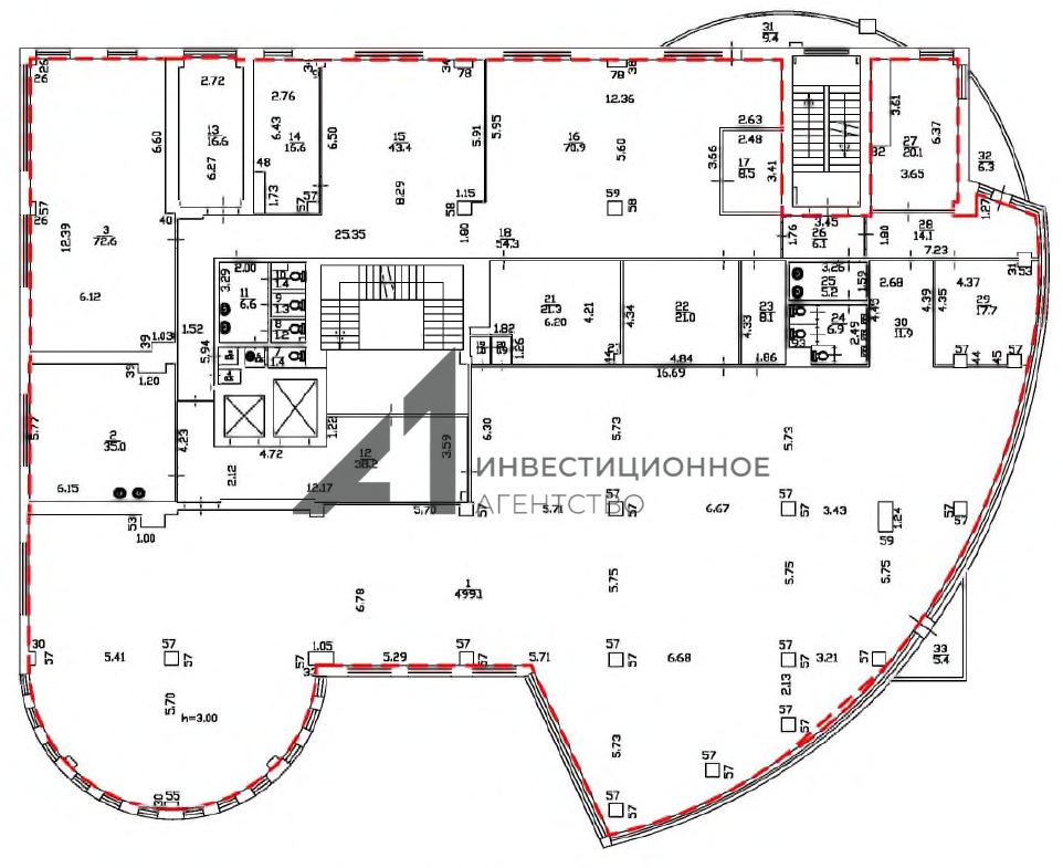 открытая планировка, есть возможность организации кабинетов;